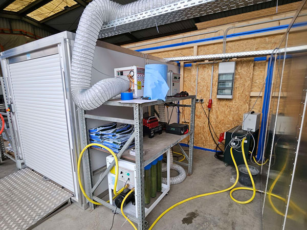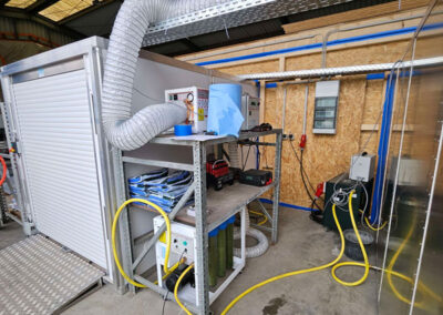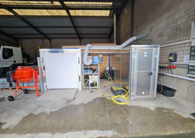 Der kontaminierte Bereich ist klar von den anderen Arbeitsbereichen abgegrenzt, um eine Kreuzkontamination zu verhindern. Unsere Zweikammern-Schleuse ist ein wesentlicher Bestandteil unseres Sicherheitskonzepts, um eine strikte Trennung zwischen kontaminierten und sauberen Bereichen zu gewährleisten.
